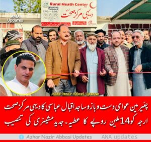 چیرمین عوامی دست و بازو ساجد اقبال کی طرف سے رورل ہیلتھ سنٹر ارجہ کے لیے ایک کروڑ چالیس لاکھ کا عطیہ